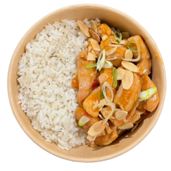 Pollastre amb salsa Singapur i arròs blanc