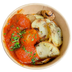 Mandonguilles amb patata panadera, ceba i herbes