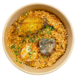 Calabacín, berenjena y garbanzos con salsa teriyaki y arroz