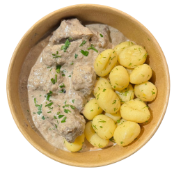 Ternera Strogonoff con gnocchis al eneldo y limón