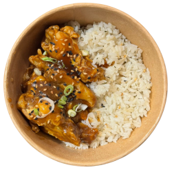 Alitas de pollo con salsa BBQ y arroz blanco