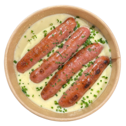 Salchichas con parmentier de patata